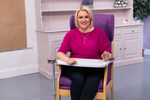 Flip Top is a simple, elegantly designed over chair table. Flip Top replaces the traditional wood laminate over chair tables on the market. The innovative and patented product design, allows Flip Top to attach to most armchairs. The unique ‘knuckle joint’ allows the table to simply slide in front of the chair when in use and just as easily, slide back to the side of the chair when not.